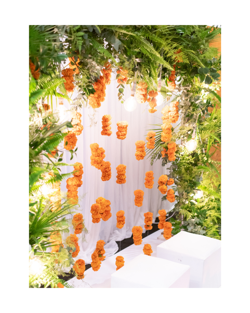 For these momentous events, the aesthetic approach was both thoughtful and intentional. The vision was to craft an atmosphere that felt distinctly masculine yet deeply rooted in tradition. Collaborating with Transfigured Décor, the design seamlessly merged contemporary elements with the vibrant, traditional hues of marigolds. The result was a stunning setting that exuded both warmth and elegance—a perfect representation of the rituals and their significance.